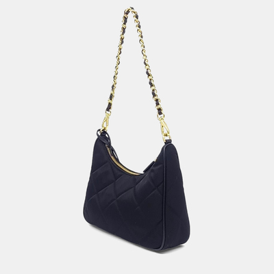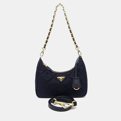 Prada’s black Re Nylon Tessuto combines sustainable innovation with sleek design, creating a lightweight and functional hobo bag. Minimalist yet striking, it adapts effortlessly to urban life, offering a sophisticated accessory that balances practicality and modern elegance.