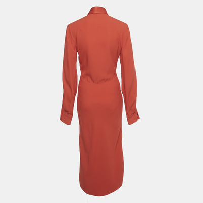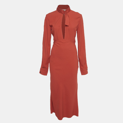 This maxi dress from Victoria Beckham makes a powerful statement in bold red crepe. Defined by a plunging neckline and tie detail, it embodies the designer’s sleek, modern femininity. The floor grazing silhouette balances sensuality with refined tailoring, making it a standout piece for evening occasions that call for drama and sophistication.