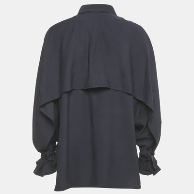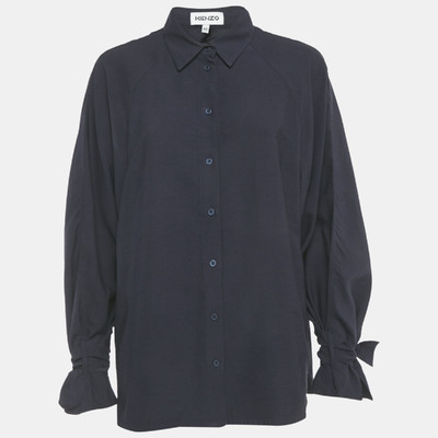 Kenzo Navy Blue Crepe Ruffled Sleeve Loose Fit Shirt XL 1222586 - 1