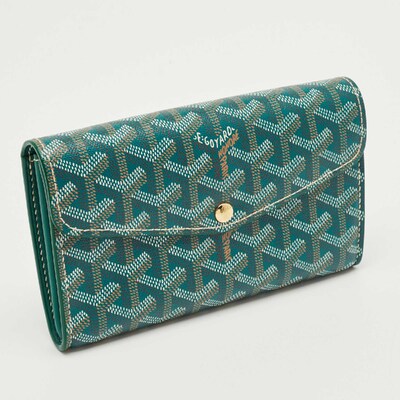 This Goyard Continental wallet pairs everyday function with iconic maison artistry, presented in green Goyardine coated canvas. The double flap design reveals organized compartments, ensuring essentials are stored in style. With its instantly recognizable pattern and artisanal craftsmanship, it captures the discreet luxury that has defined Goyard since the 19th century.