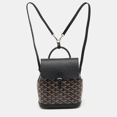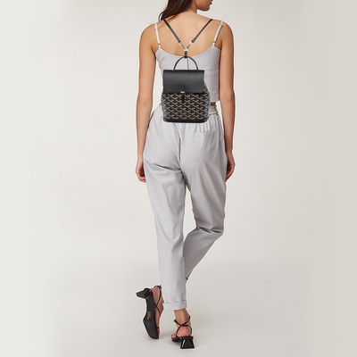 The Mini Alpin backpack in black Goyardine canvas offers practical luxury with a compact silhouette. Leather panels provide structure, while adjustable straps ensure comfort and mobility.