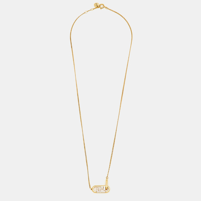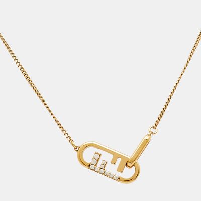 Fendi’s O’Lock necklace transforms a signature motif into an elegant jewel, crafted in radiant gold tone metal with crystal embellishments. The modern chain silhouette exudes bold femininity while remaining wearable for daily dressing. With its sparkling accents, it captures the balance of contemporary Italian glamour and timeless craftsmanship that defines the house.