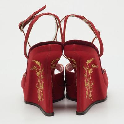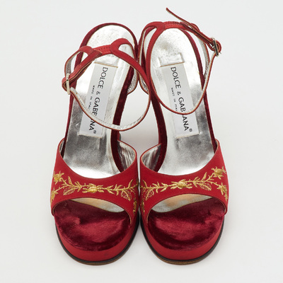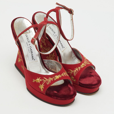 Dolce&Gabbana Red Fabric Embroidered Accent Wedge Ankle Strap Sandals Size 36 1222186 (красный, lpn31019304)