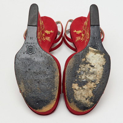 Dolce&Gabbana Red Fabric Embroidered Accent Wedge Ankle Strap Sandals Size 36 1222186 - 1