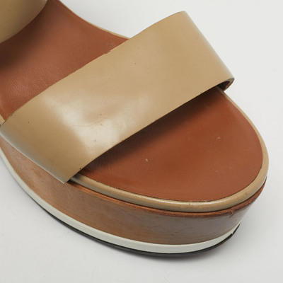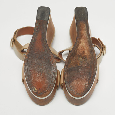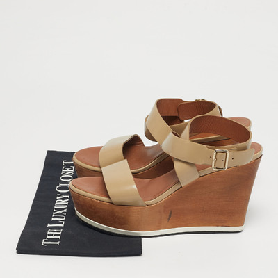 Givenchy lends height a natural ease with these beige leather wedge sandals. Wide straps cross effortlessly over the foot, secured with a buckle at the ankle. Set on sculpted wooden platforms with a contrasting base, they bring together comfort and luxury in one stride.