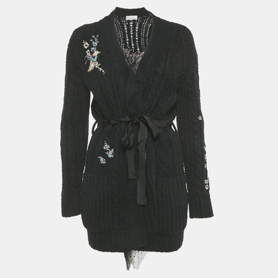 Red Valentino Black Floral Embroidered Knit Cardigan XS 1222923 (чёрный, lpn31019363)