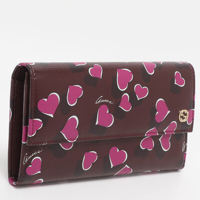 Playful yet polished, this Gucci Continental Wallet features a multicolor heart print over premium leather. Finished with the iconic interlocking G clasp for a touch of charm.