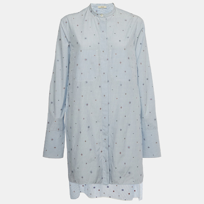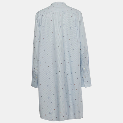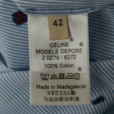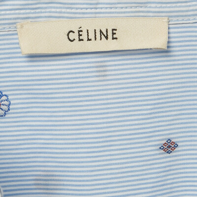 Celine Blue Striped Cotton Embroidered Asymmetric Hem Shirt L 1223202 (голубой, lpn31019437)