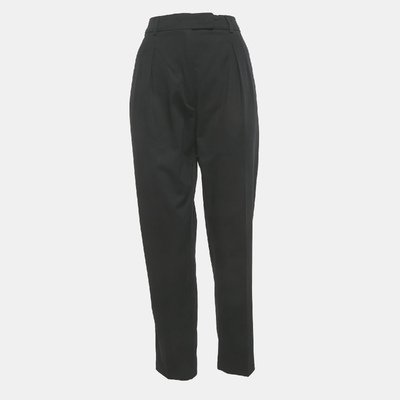 Max Mara crafts a versatile wardrobe essential in these black cotton tapered trousers. Designed with precise tailoring, they strike the perfect note between structure and ease, ideal for polished workwear or sleek evening ensembles. True to the brand’s ethos, the trousers embody modern femininity through timeless lines.