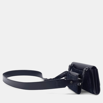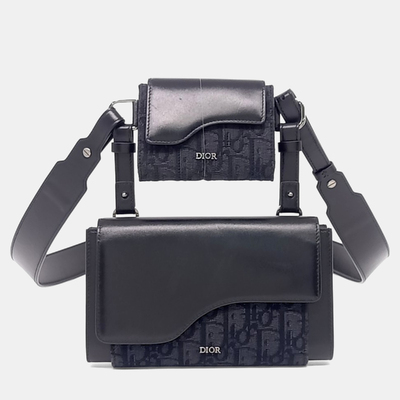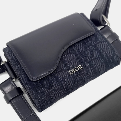Dior Black Blue Canvas and Leather Oblique Elite Pouch Crossbody Bag 1223973 (чёрный, lpn31019453)