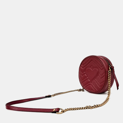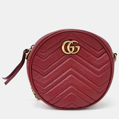The Gucci Red Leather Marmont Round Shoulder Bag brings a bold pop of color to a modern shape. Crafted from smooth red leather, its circular design offers a fresh take on the classic shoulder bag. Compact yet functional, it is ideal for carrying essentials while adding a distinctive designer touch to everyday outfits.