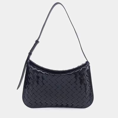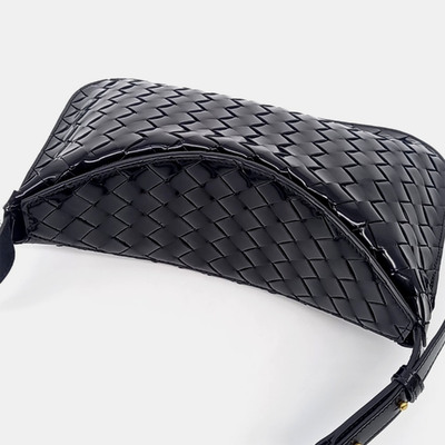 The Bottega Veneta Black Leather Intrecciato Flap Shoulder Bag showcases the House’s signature woven leather technique. Crafted in smooth black leather, its flap design and structured shape offer both style and functionality. Compact yet versatile, this shoulder bag is ideal for carrying essentials while adding a recognizable designer touch to everyday or evening outfits.