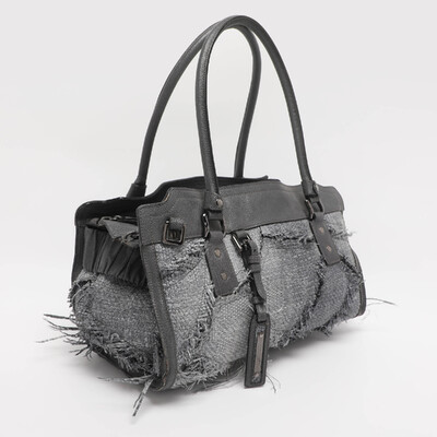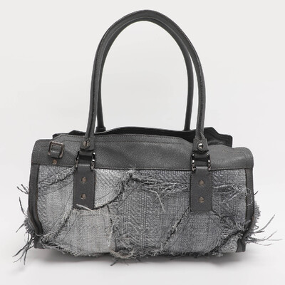 This preloved Burberry satchel merges grey leather with woven patchwork straw, creating a tactile contrast. Structured yet relaxed, it channels the house’s unmatched elegance.