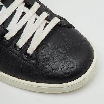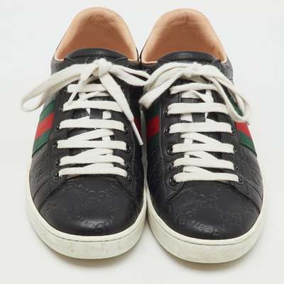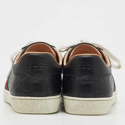 Covered in embossed Guccissima leather, these Ace sneakers bring texture and depth to a classic low top shape. The all black finish sharpens their look, giving a subtle twist to a design rooted in Gucci’s everyday style.