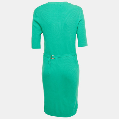 Love Moschino delivers effortless chic with this green knit midi dress, cinched with a belt for flattering definition. Comfortable and versatile, it transitions seamlessly from daywear to casual evening styling. A modern wardrobe essential.