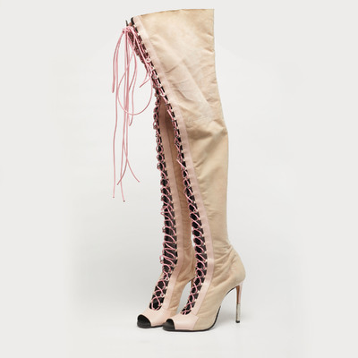 Balmain Beige/Pink Leather and Suede Over The Knee Boots Size 39.5 1223748 - 1