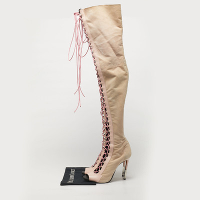 Balmain Beige/Pink Leather and Suede Over The Knee Boots Size 39.5 1223748 (бежевый, lpn31019548)