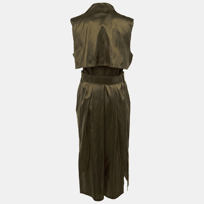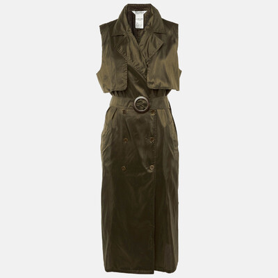 Max Mara Olive Green Silk Sleeveless Trench Midi Dress XL 1223668 (зелёный, lpn31019556)