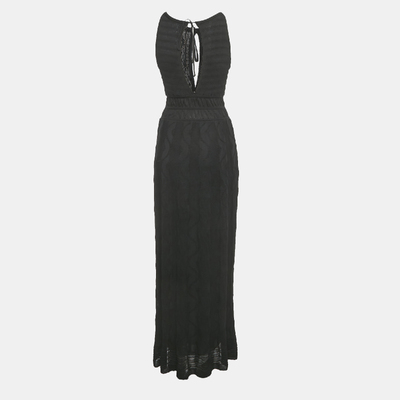 Missoni Black Knit Plunge Neck Tie Maxi Dress M 1223145 (чёрный, lpn31019567)