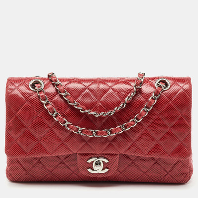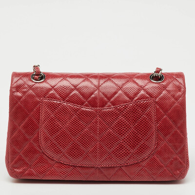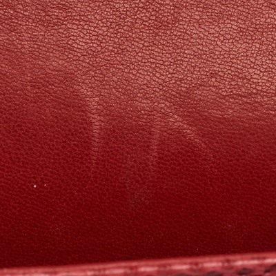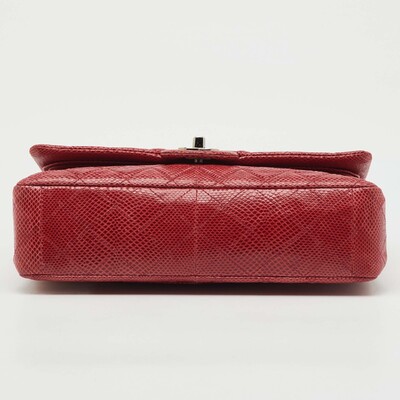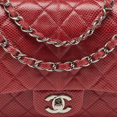 Reimagined season after season, the classic designs from Chanel manages to retain their glamour and noteworthy silhouettes. From one of the most celebrated collections, this Double Flap bag is enriched with historic details and functional elements. The bag can be conveniently carried with interwoven chain shoulder strap and is adorned with silver tone accents. With a refined construction, it comes made from snakeskin in a red hue. The signature CC turn lock on the front flap leads the way to a perfectly sized interior.
