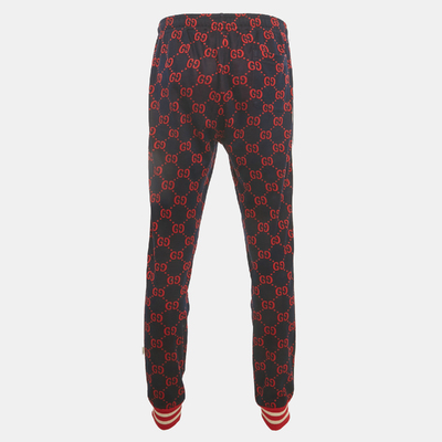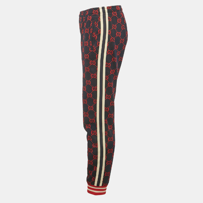 Gucci Navy Blue/Red GG Jacquard Knit Joggers L 1221811 (lpn31019587)