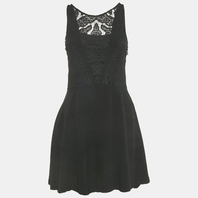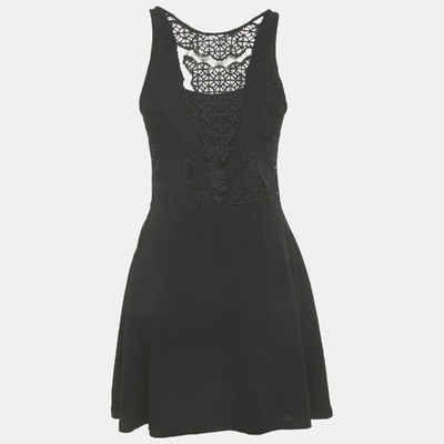 Sandro Black Crepe Lace Detail Mini Dress S 1223159 (чёрный, lpn31019633)