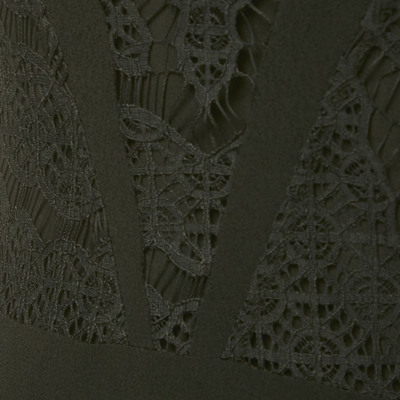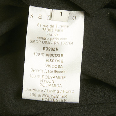 Cut in fluid black crepe, this authentic Sandro dress plays with contrast through lace inserts around the bodice. Its simple silhouette makes the lace the standout, balancing modern ease with feminine detail.