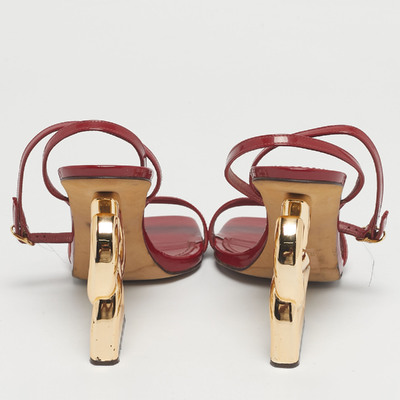 Dolce and Gabbana’s Keira sandals in red patent leather combine glossy texture with a classic ankle strap. The saturated hue captures the maison’s fiery Italian aesthetic. Perfect with neutral tailoring or as a punchy finish to an evening look.
