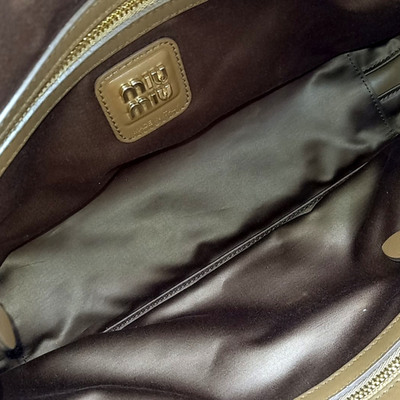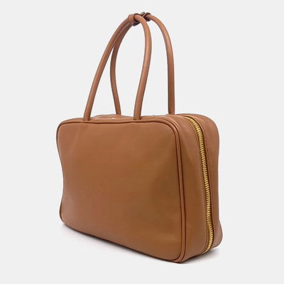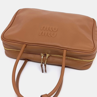 The Miu Miu Brown Leather Embossed Logo Bowling Bag combines classic shape with contemporary detailing. Crafted in rich brown leather, it features a subtle embossed logo for a touch of brand recognition. Spacious enough for everyday essentials, this bag offers a practical yet stylish option for casual or workwear, bringing a distinctive designer touch to any outfit.