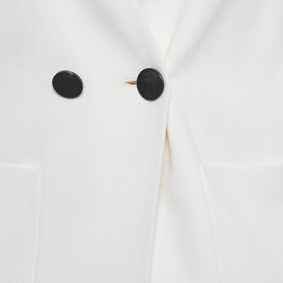 Joseph’s Lambert blazer is cut in crisp white crepe, its sharp tailoring softened by the fluid fall of the fabric. The double breasted front with contrasting buttons brings a touch of edge, while oversized pockets keep it modern and easy. A designer blazer for women that moves effortlessly from office hours to evening plans, and quickly becomes a wardrobe anchor.