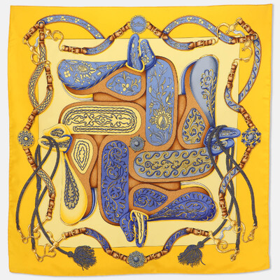 Hermes Yellow Multicolor Printed Silk Festival Scarf 1223384 (lpn31019698)