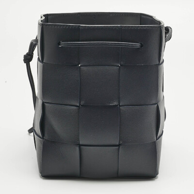 Bottega Veneta Navy Blue Intrecciato Leather Small Cassette Bucket Bag 1223156 (lpn31019701)
