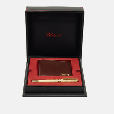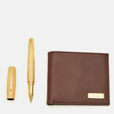 Chopard merges everyday practicality with refined detail in this bifold wallet and rollerball pen set. Rendered in brown leather, the wallet carries discreet branding, while the coordinating pen reflects the maison’s attention to craftsmanship. Together, they create a thoughtful pairing that underscores Chopard’s legacy in both luxury accessories and functional design.