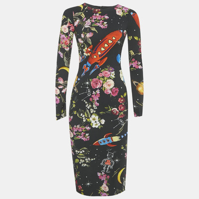 Dolce&Gabbana Black Printed Silk Midi Dress XS 1222872 - 1