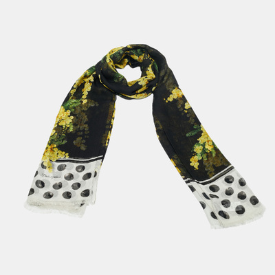 This Dolce and Gabbana silk scarf showcases a striking floral print set against a deep black canvas, celebrating the maison’s love for bold, feminine motifs. The fine silk fabric drapes elegantly, offering versatility whether styled around the neck, tied to a bag, or worn as a headscarf. A refined accessory, it brings unmistakable Italian flair and artistry to any wardrobe.