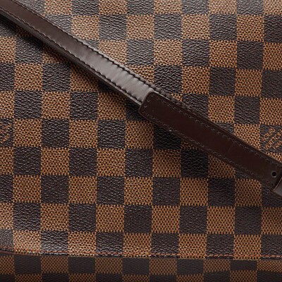 This designer shoulder bag comes in Damier Ebene canvas with a smooth leather strap. Slim, structured, and detailed, the Musette Tango is a luxe option for everyday carry.