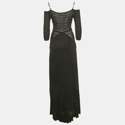 Elisabetta Franchi Black Perforated Knit Off Shoulder Maxi Dress L 1222179 - 1