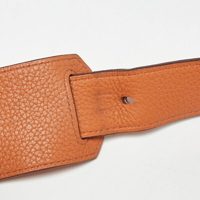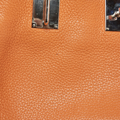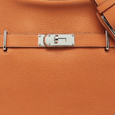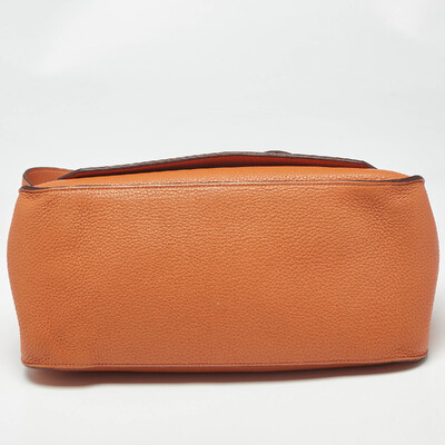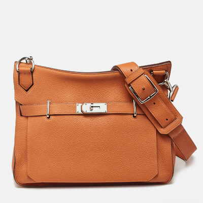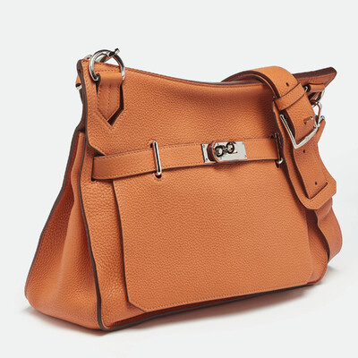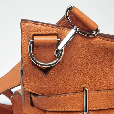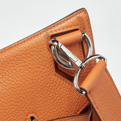 Hermès’ Jypsiere 34 is crafted from supple Taurillon Clemence leather in the house’s signature orange shade, accented with palladium finish hardware. Inspired by the Birkin but designed for hands free ease, it carries a messenger style practicality with unmistakable Hermès allure.