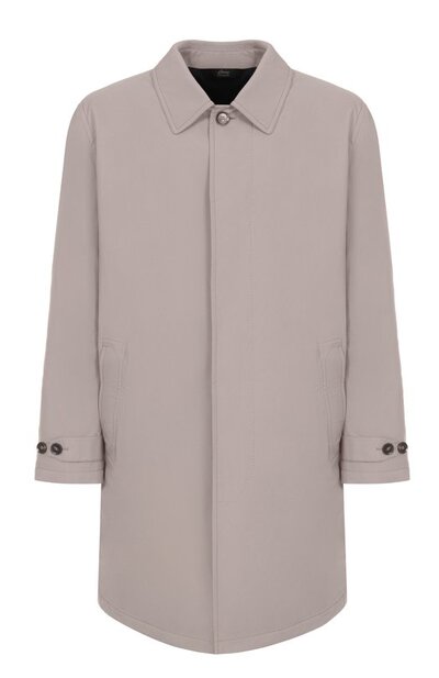 Плащ из коллекции Performa сшили из влагоотталкивающего полиэстера, дополнив модель смесовым утеплителем на основе кашемира. На рукавах предусмотрели регулируемые паты, а сзади – высокую шлицу. Изделие с врезными боковыми карманами застегивается потайными роговыми пуговицами.
