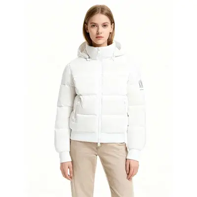 Женская зимняя пуховая куртка Armani Exchange с прямым кроем и базовым дизайном станет отличным выбором для повседневного гардероба в демисезонный и зимний периоды. Изготовленная из прочного полиамида, она обеспечивает надежную защиту от ветра и влаги, а подкладка из того же материала дарит комфорт при носке. Наполнитель состоит преимущественно из пуха с добавлением пера, что гарантирует тепло и легкость изделия.Белый оттенок без принта делает вещь универсальной и легко сочетаемой с разными стилями одежды. Практичная двухзамковая молния обеспечивает удобство в использовании, а съемный капюшон добавляет функциональности, позволяя адаптировать куртку к погодным условиям. На левой руке расположена аккуратная нашивка с логотипом, подчеркивающая статусность изделия.Модель оснащена двумя внешними карманами для хранения необходимых мелочей или согрева рук. Этот трендовый вариант отлично подходит для осенне-весеннего периода благодаря продуманному крою и материалам высокого качества. Куртка создана с учетом современных тенденций моды, предлагая сочетание стиля и практичности без лишних деталей.Выбирая эту верхнюю одежду, можно быть уверенной в комфорте даже в прохладные дни благодаря качественному наполнителю и плотной ткани. Универсальный дизайн позволяет использовать изделие как основу для различных образов, поддерживая женственность и удобство одновременно.