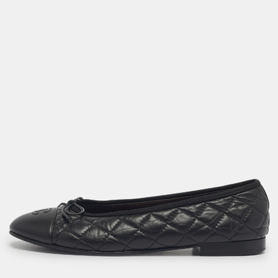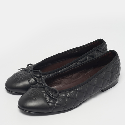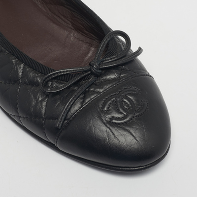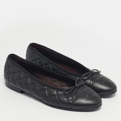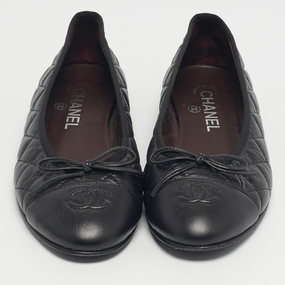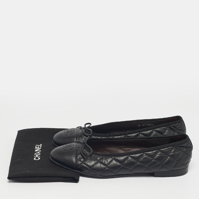 Chanel Black Leather CC Cap-Toe Bow Ballet Flats Size 38.5 1210951 (чёрный, lpn31025345)