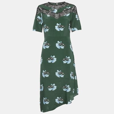 Maje Green Floral Print Lace Trim Crepe Asymmetric Midi Dress M 1222968 (зелёный, lpn31025393)