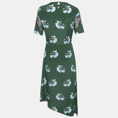 Maje Green Floral Print Lace Trim Crepe Asymmetric Midi Dress M 1222968 - 1