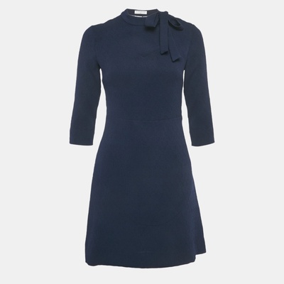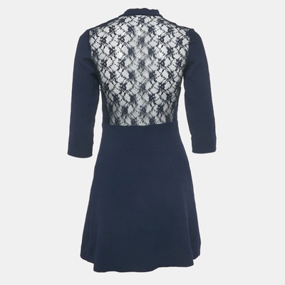 Sandro Navy Blue Crepe Lace Panel Jovane Mini Dress S 1223217 (lpn31025406)
