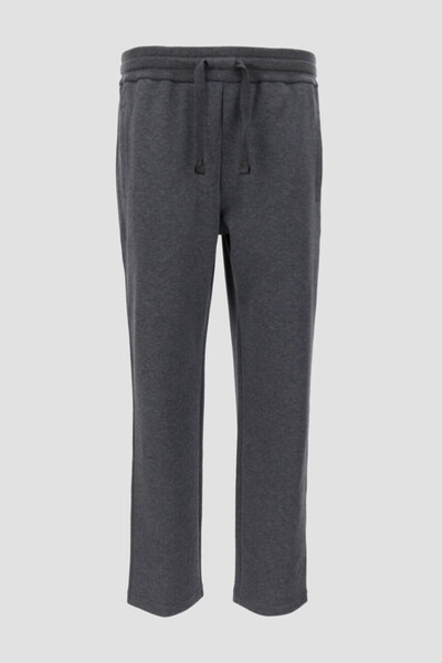 Тёмно-серые брюки в спортивном стиле от Brioni. Для производства изделия прямого силуэта используется мягкий трикотаж на основе хлопка и прочного нейлона. Дизайн меланжевой модели завершается широким эластичным поясом-кулиской, обеспечивающим оптимальную посадку по фигуре.