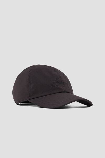 Бейсболка Brioni с регулирующим ремешком на липучке. Модель Performa из капсульной коллекции Golf выполнена из плотного полиэфира тёмно-коричневого цвета, сертифицированного GRS. GRS (глобальный стандарт вторичной переработки) — это добровольный стандарт, соответствие которому подтверждается независимой сторонней проверкой. Помимо прочих, в стандарт включены требования, связанные с вторсырьем, социальной и экологической практикой и химическими ограничениями. В роли атрибута Дома выступает крупный дизайнерский логотип, вышитый тональной нитью спереди.