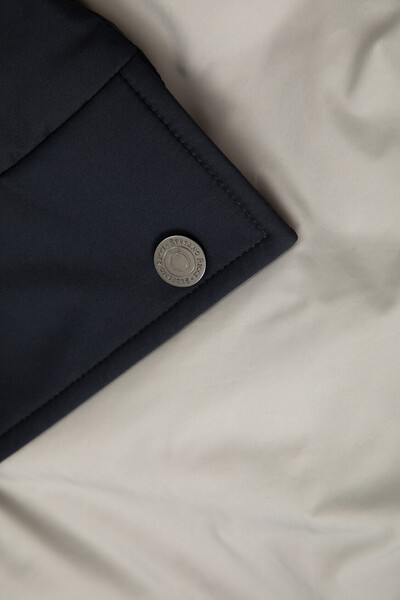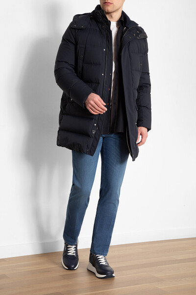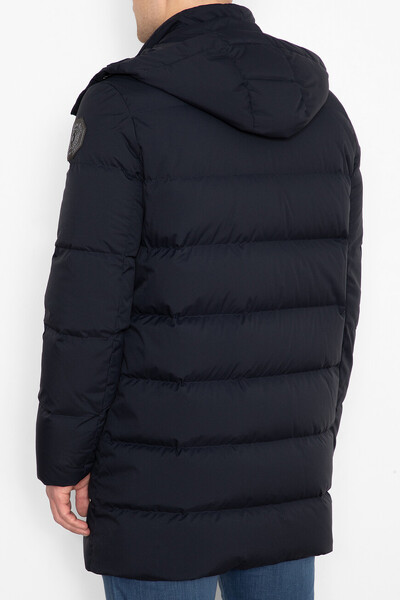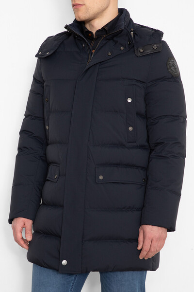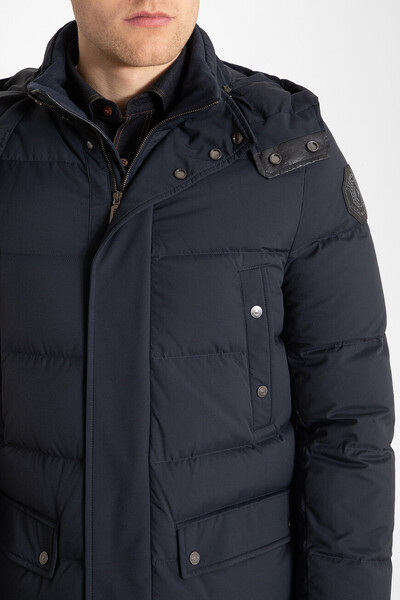Пуховик Stefano Ricci с объёмным отстёгивающимся капюшоном. Одежда из линейки LUXURY TECH идеально подходит для путешествий, занятий спортом и отдыха. Для создания модели тёмно-синего цвета выбран высокопрочный стёганый нейлон. Принадлежность изделия бренду обозначена чёрной эмблемой в виде логотипа SR LUXURY TECH, размещённой на левом рукаве. Дополните образ бейсболкой из плотной шелковистой ткани из той же коллекции.