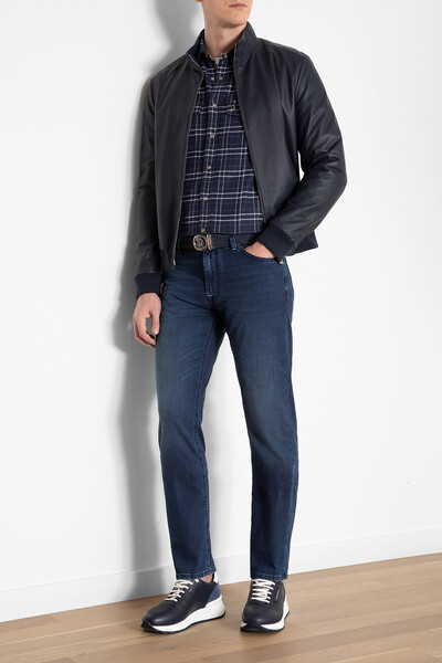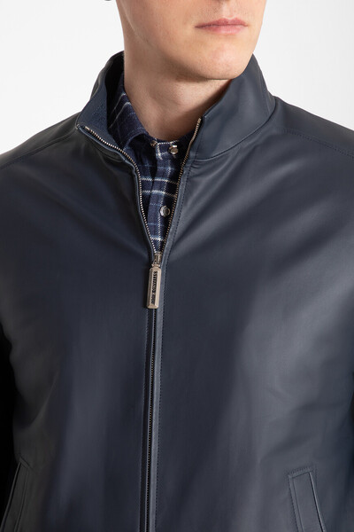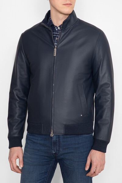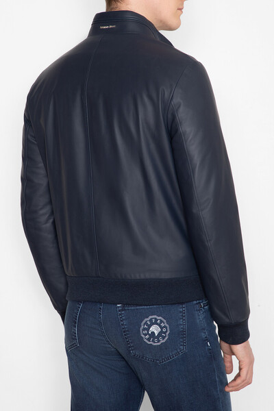 Кожаная куртка тёмно-синего цвета от Stefano Ricci. Модель оснащена подкладкой из двух видов ткани: прочного нейлона с вышитым логотипом сверху и брендированной нижней частью из высокотехнологичного шёлка. Изделие прямого кроя из матовой кожи наппа - это идеальный вариант для создания внесезонных многослойных образов.