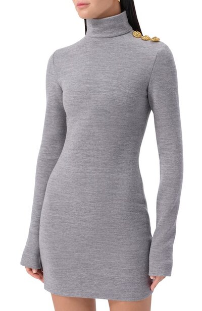 Платье из шерсти и хлопка Balmain ff0r8895/jl17 (серый, lpn31028154)