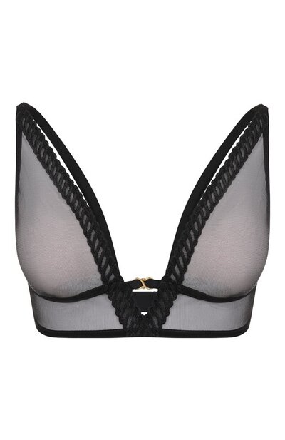 Бюстгальтер Sheer Emotion из эластичного тюля дополнили вышитым кантом вдоль V-образного выреза. Модель с треугольными чашечками и регулируемыми бретелями украсили золотистой вставкой в виде символа бесконечности на перемычке спереди.